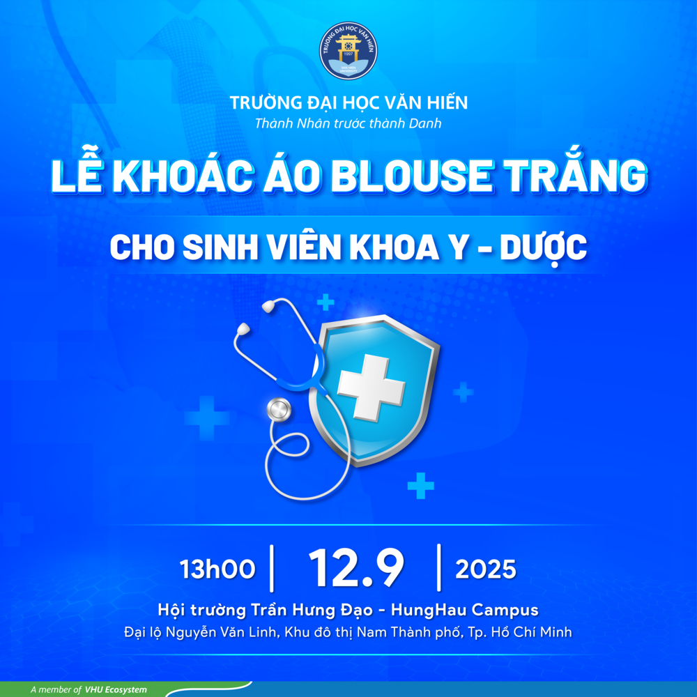 With the aim of bringing memorable experiences to students of the Faculty of Medicine and Pharmacy in their learning and training journey, and at the same time creating opportunities for parents and teachers to witness the solemn moment when students put on the white blouse - the noble symbol of the medical profession, the Faculty of Medicine and Pharmacy - Van Hien University respectfully announces the organization of the "Blouse Wearing Ceremony for students of the Faculty of Medicine and Pharmacy" in 2025.
